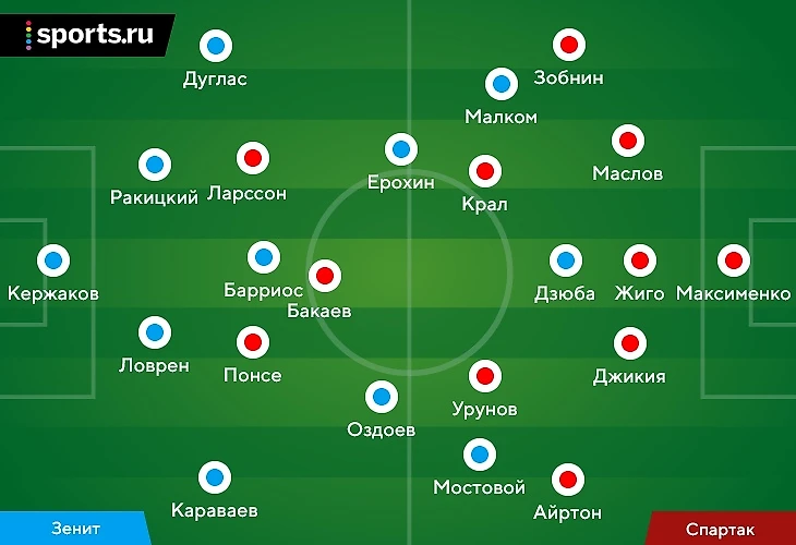 В прошлом туре «Зенит» вернулся к 4-4-2 ромб, которая была спорной, но принесла четыре победы (в том числе – в финале Кубка России) на летнем отрезке сезона-2019/20. С составом на «Спартак» эта схема тоже была вероятна (Барриос – нижний полузащитник, Оздоев – правее, Ерохин – левее, Малком – под Дзюбой и Мостовым), как и классические 4-4-2 (Малком, Ерохин и Мостовой могли сыграть как на любом из флангов, так и в атаке в паре с Дзюбой), но Сергей Семак удивил.