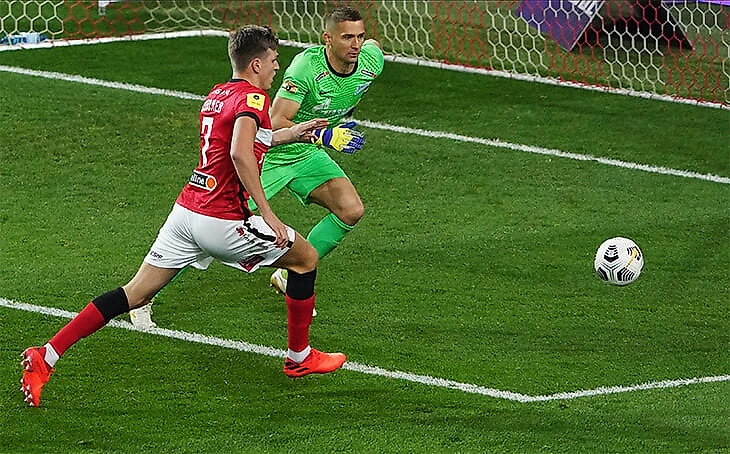 Крал легко обыграл Дугласа (Барриос побоялся идти в борьбу, чтобы не сфолить), но скорее Семак должен предъявлять претензии к Ерохину, упустившему вбегание Алекса в штрафную. Изначально ближе к Кралу располагался Азмун – из-за того, что Сердар закрывал зону, оставленную Ерохиным. Вероятно, Азмун тоже мог действовать агрессивнее, но выключение Ерохина осталось совсем непонятным.