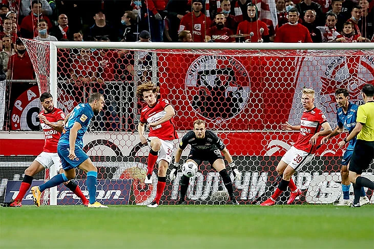 5. Несмотря на качественный выход «Спартака» из обороны, с 15-й минуты до конца первого тайма «Зенит» прижал хозяев к их штрафной и, конечно, должен был забивать (11-2 по ударам в этот отрезок).