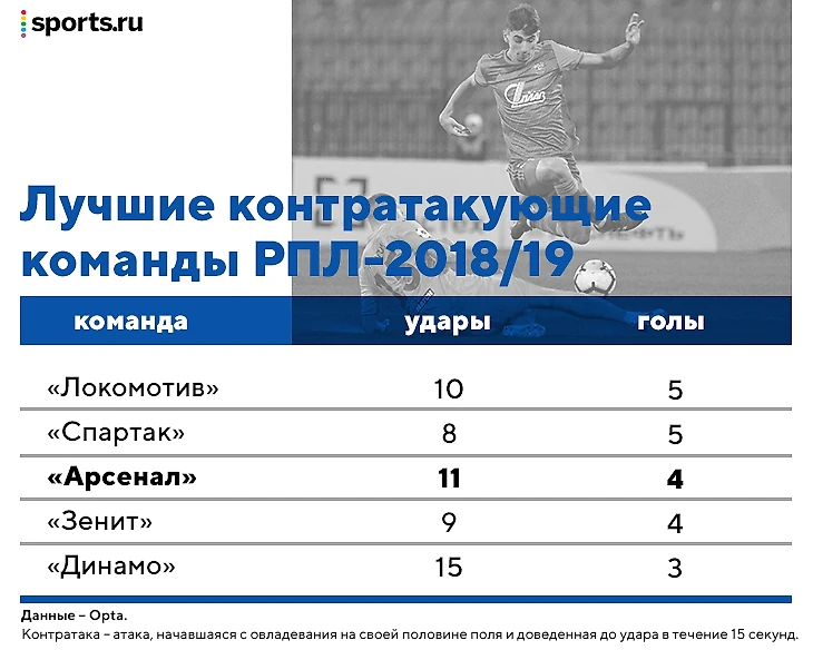 При Кононове (как и при пришедшем после него Игоре Черевченко) «Арсенал» очень много создавал в контратаках за счет индивидуально сильных игроков на краях: скорость и дриблинг Бакаева, Резиуана Мирзова, Эванса Кангва и Даниила Лесового кошмарили РПЛ-2018/19.