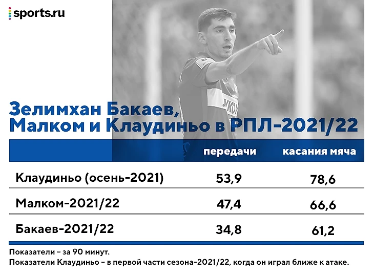 Даже в условиях тотального хаоса Бакаев выдал сносную первую часть сезона – например, по количеству передач под удар с игры он входил в топ-10 в РПЛ. А индивидуально сильный отрезок при Паоло Ваноли вообще вывел Бакаева в число острейших игроков сезона.