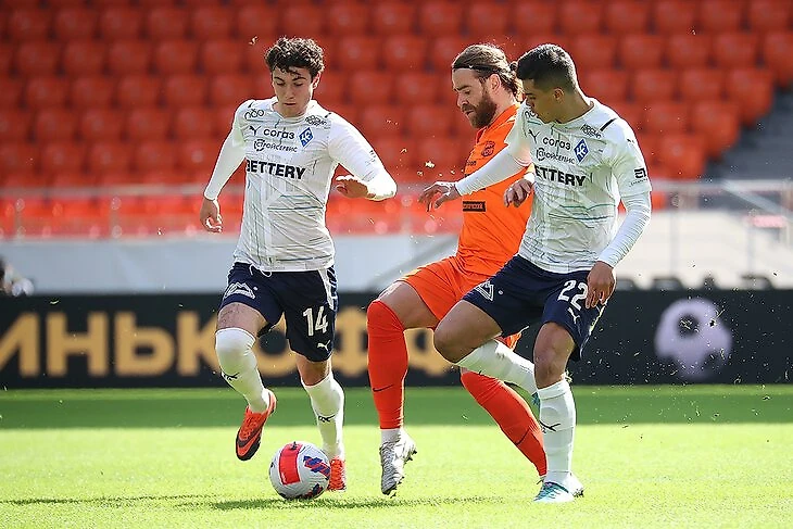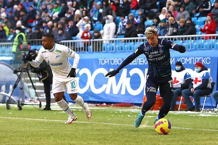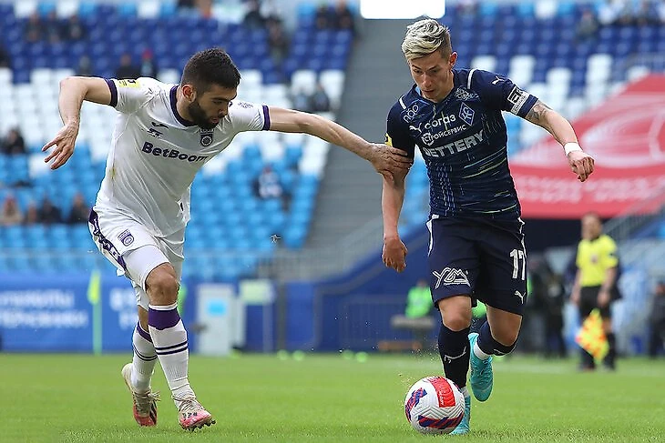 Наверное, в ФНЛ у нас было даже больше вариантов ведения игры. Когда нам нужно было забивать в конце матчей, играли в два нападающих: Сергеев хорошо играет головой и по меркам РПЛ, а Егор Голенков – вообще блестяще. В таких ситуациях справа у нас выходил Кабутов – он умеет раскачать соперника и точно доставить мяч в штрафную. Ежов – топ-игрок на пространстве даже по меркам РПЛ, но, конечно, при таком характере матча ему было не совсем комфортно.