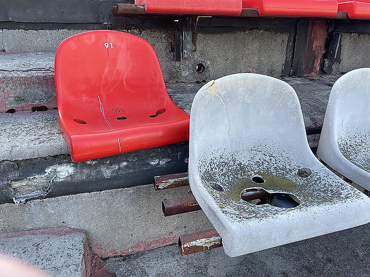 Пластиковые кресла на первом ярусе были загрязнены, но это точно не самая большая проблема стадиона.