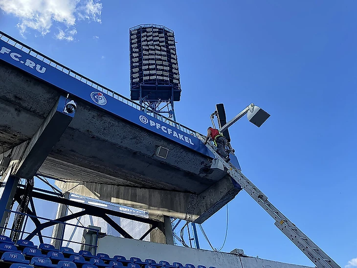 С полем и нижним ярусом трибун «Факел» разобрался. Перестелил газон, установил рекламные видеоборты, автоматическую систему полива поля и новое табло, а также постелил искусственную траву сразу за полем – раньше там лежал асфальт.
