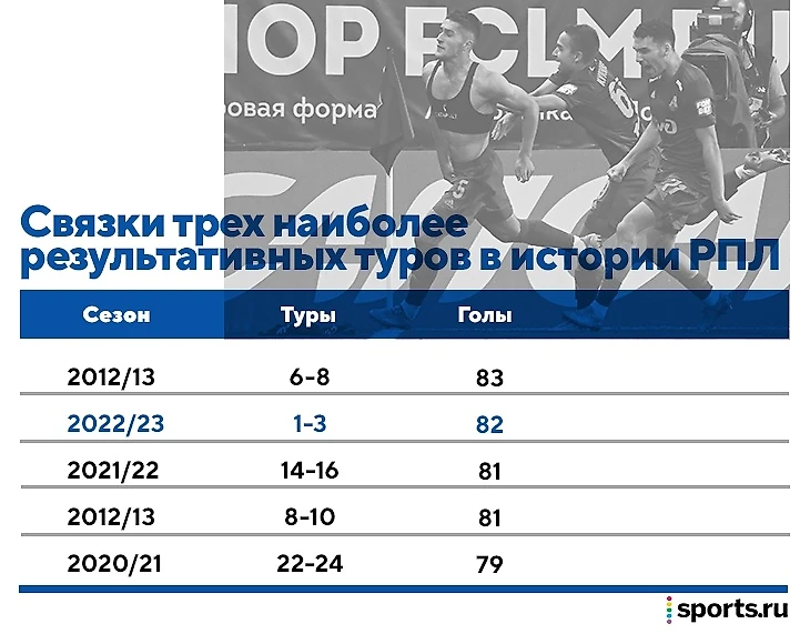 За 20 сезонов РПЛ лишь в пяти средняя результативность стартовых трех туров превышала результативность по всему чемпионату. Все случаи – из системы «осень-весна» (2012/13, 2013/14, 2014/15, 2019/20 и 2021/22).