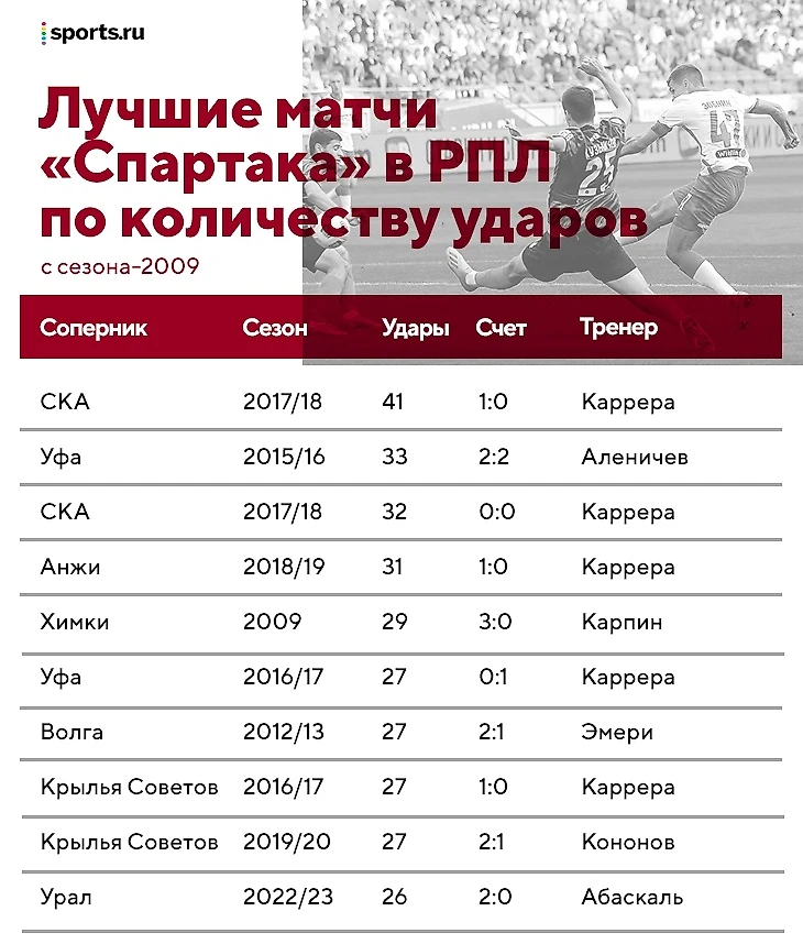 В Екатеринбурге «Спартак» нанес 26 ударов – это десятый результат для москвичей с сезона-2009.