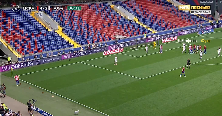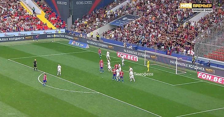 Талалаев говорил, что просил игроков переставить Тимофеева на три метра. Очевидно, эти три метра – назад, ближе к дальнему углу вратарской, куда шли подачи ЦСКА.