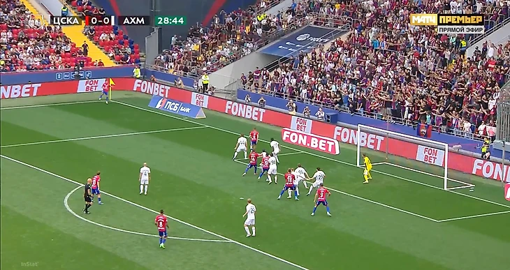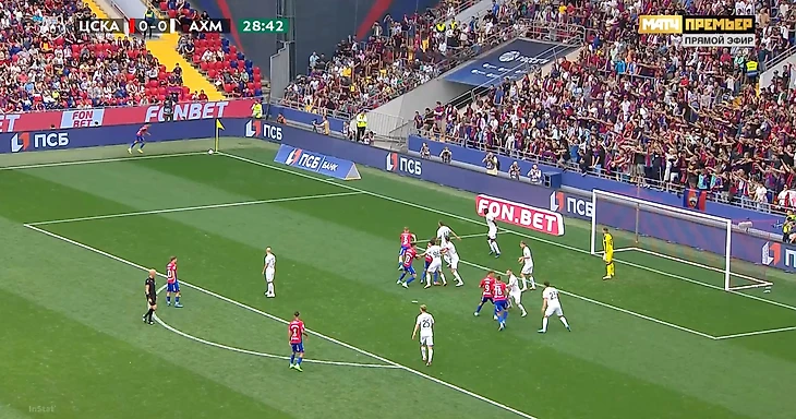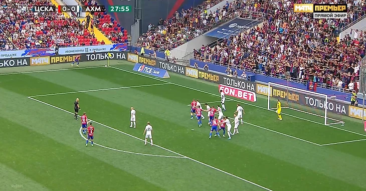 На 28-й минуте Медина впервые исполнил угловой слева – спустя минуту случился и второй, ставший голевым. ЦСКА использовал один алгоритм, против которого «Ахмат» в целом оба раза не справился.