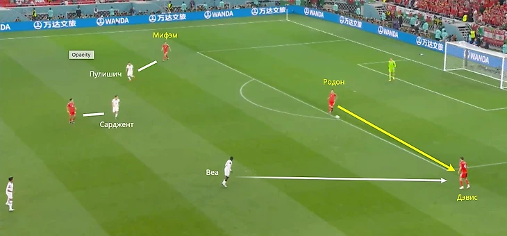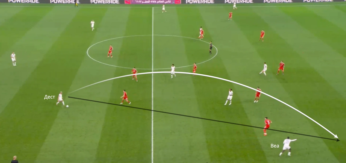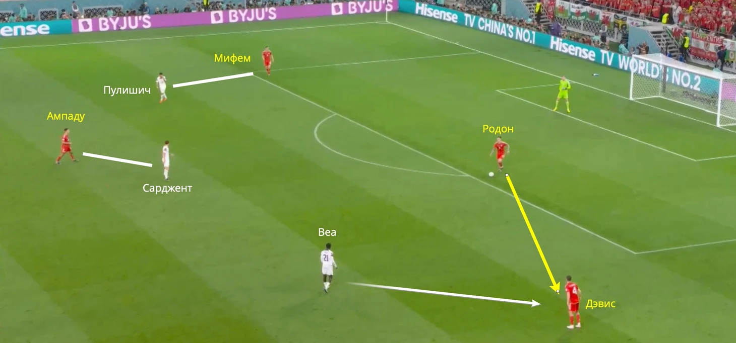 Справа за ширину отвечал Тимоти Веа – он убегал за спину левому латералю Уэльса Нико Уильямсу.