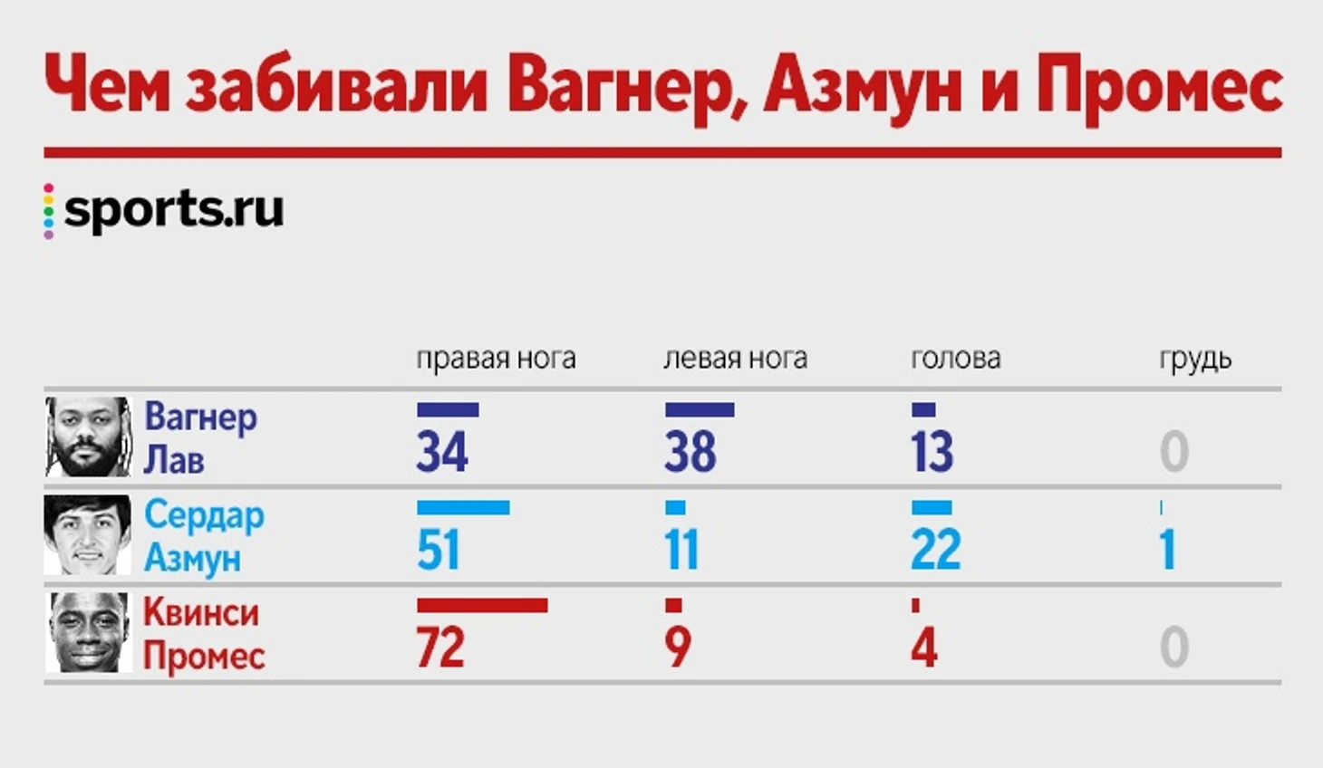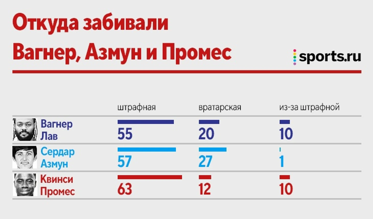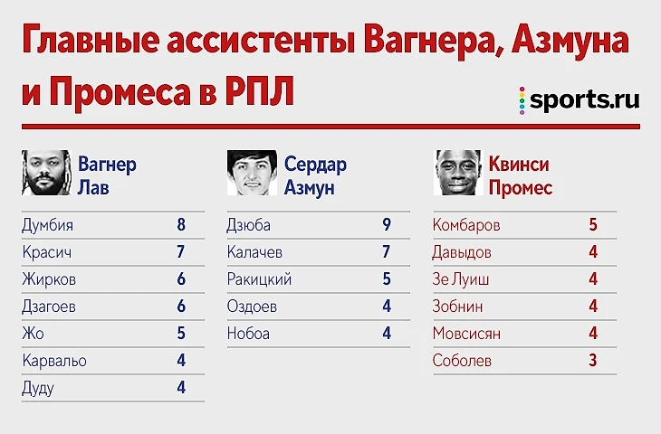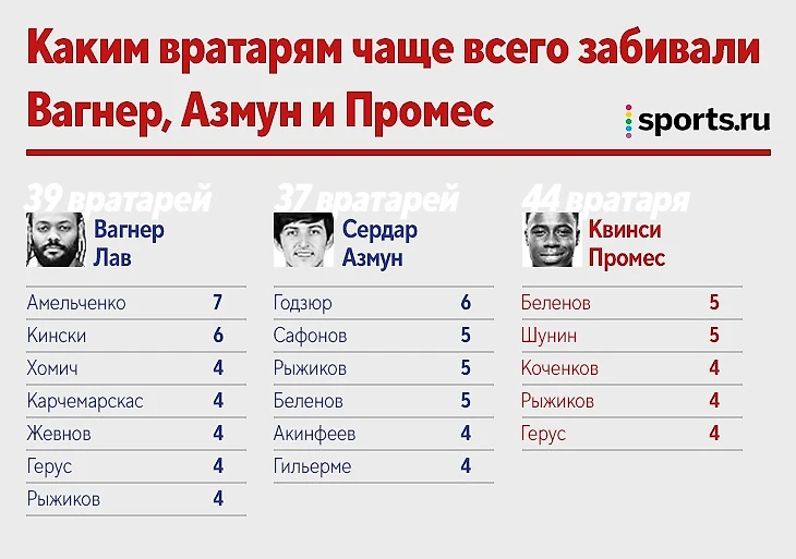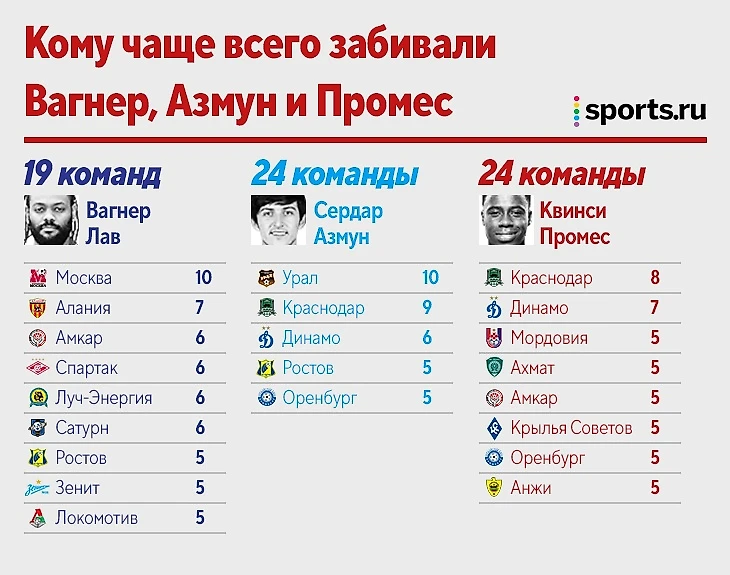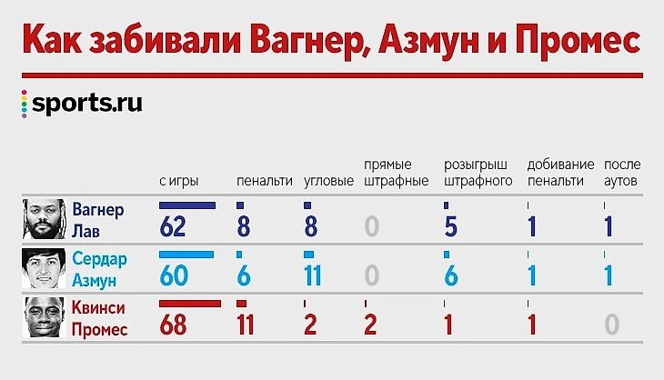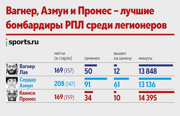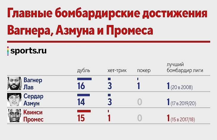 Промес = Вагнер Лав = Азмун! Инфографика о мегабомбардирах с 85 голами в РПЛ