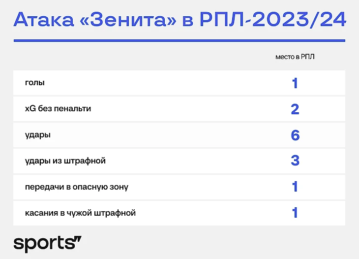 Прошлым летом ушли Малком и Далер Кузяев, и это сильно повлияло на команду. Да, даже без прежних лидеров у «Зенита» с отрывом сильнейший состав лиги, но его уже недостаточно для яркой игры – кажется, «Зенит» всерьез не мотивирует даже игра против «Спартака». В прошлом сезоне «Зенит» с гигантским перевесом лидировал по всем атакующим метрикам, в этом даже не по всем занимает первое место.