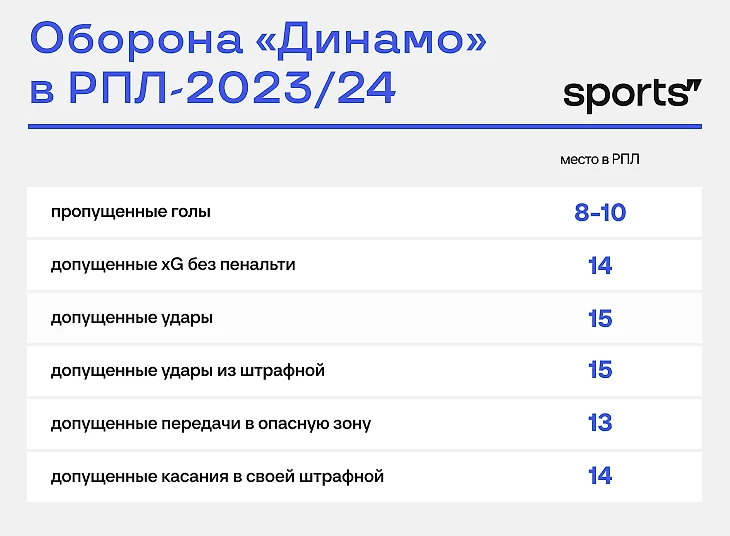 В итоге «Динамо» обороняется на уровне аутсайдера.