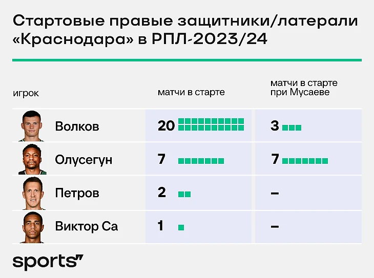 Стоит признать: «Краснодар» опоздал с комплектацией на сезон-2024/25. Да, Кордобу на первые недели заменили вернувшимся Федором Смоловым, но оперативно не подписали центрального защитника в старт, а также фактически оставили голыми оба фланга обороны. В Суперкубке против «Зенита» (2:4) правый фланг закрывал Олусегун, которого спустя месяц Мусаев назовет левым нападающим, а левый – запасной опорник Кевин Ленини.
