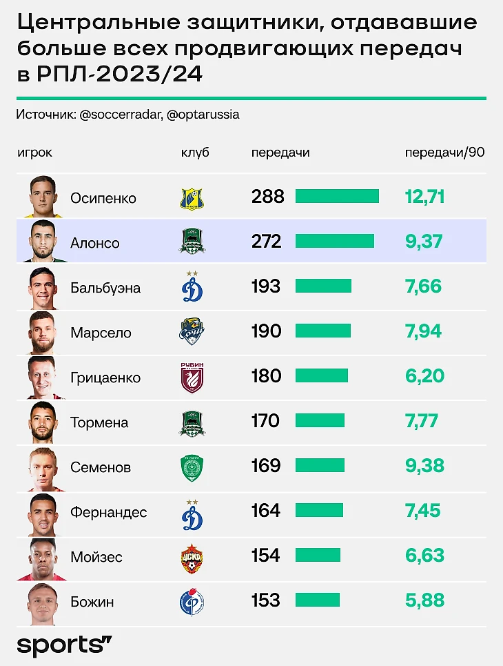 В этом сезоне лидер «Краснодара» сделал лишь 4 передачи под удар с игры – в два раза меньше, чем Виктор Са, больше даже у Петрова (6 при трех матчах в старте), Кривцова, Мозеса (у обоих – 5 при двух) и Баши (5 при трех). «Краснодар» не получает качества от главного плеймейкера вблизи чужой штрафной и не спешит опустить его к центру поля, где Сперцян может быть полезен.