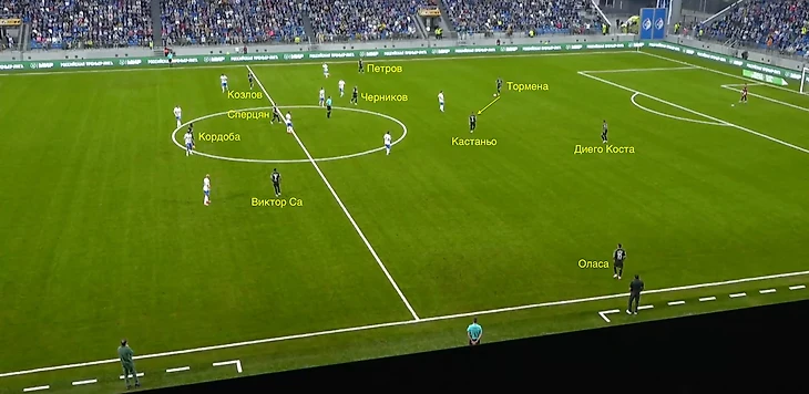 Радикальные перемены начались в третьем туре против «Факела» (0:0). Во-первых, у Мусаева наконец-то появился полноценный правый защитник – Петров. Во-вторых, в старте вместо Кривцова вышел Кастаньо, призванный улучшить продвижение мяча. В-третьих, номинальным правым нападающим стал Данила Козлов, который в первую очередь играет не за счет скорости, как, например, Баши и Мозес, а за счет интеллекта.