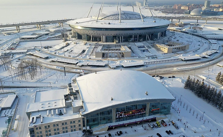 • Построена на месте, где находилось запасное поле стадиона имени Кирова с трибунами, на нём один официальный матч в рамках Кубка России провёл футбольный клуб «Зенит»