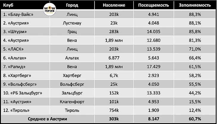 8. Австрийская Бундеслига: заполняемость - 62,9%