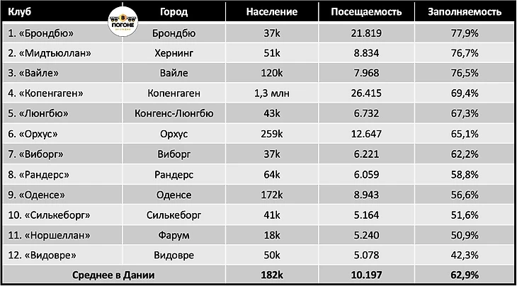 Известным клубам «Копенгагену» и «Брондбю» есть над чем работать, больше 20% потенциала по заполняемости домашних стадионов