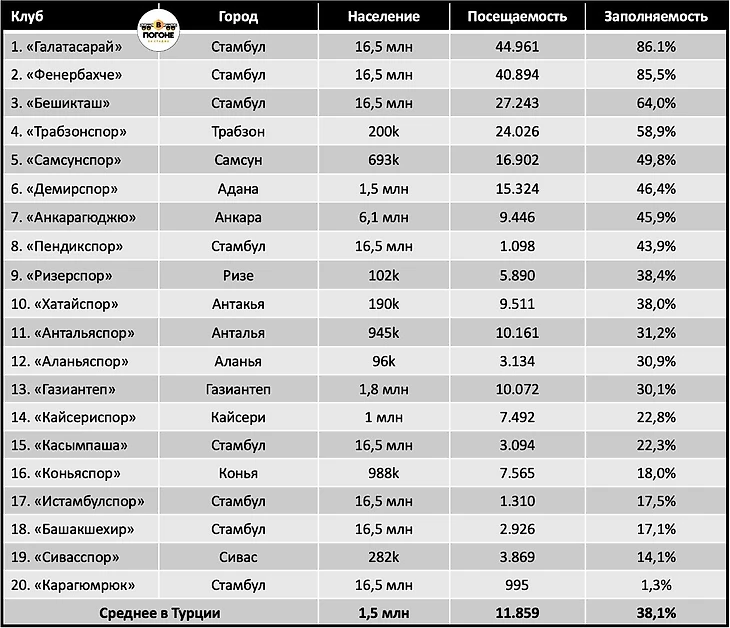 10. Турецкая Суперлига: заполняемость - 38,1%