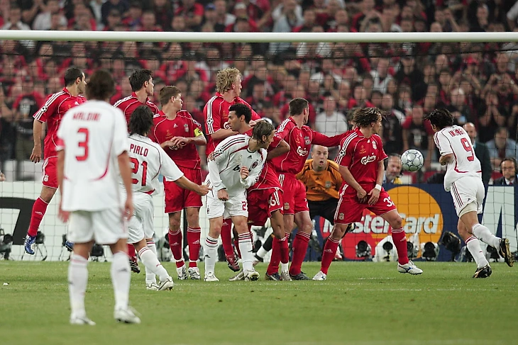 Внезапно мяч снова оказывается у меня. Отлично. Инзаги в офсайде. Возвращайся, Пиппо, возвращайся, иначе я не смогу тебе отдать. Ладно, тогда я сам пробью. Но… Оооо! Откуда здесь столько игроков в красной форме?! Шесть игроков «Ливерпуля» окружают меня. Это слишком. Хаби Алонсо сбивает меня с ног. Хорошая новость в том, что штрафной будет с любимой позиции Пирло. На тренировках он всегда забивает отсюда. Он кладет мяч так, будто его нога — это рука. Давай, Андреа! Давай!