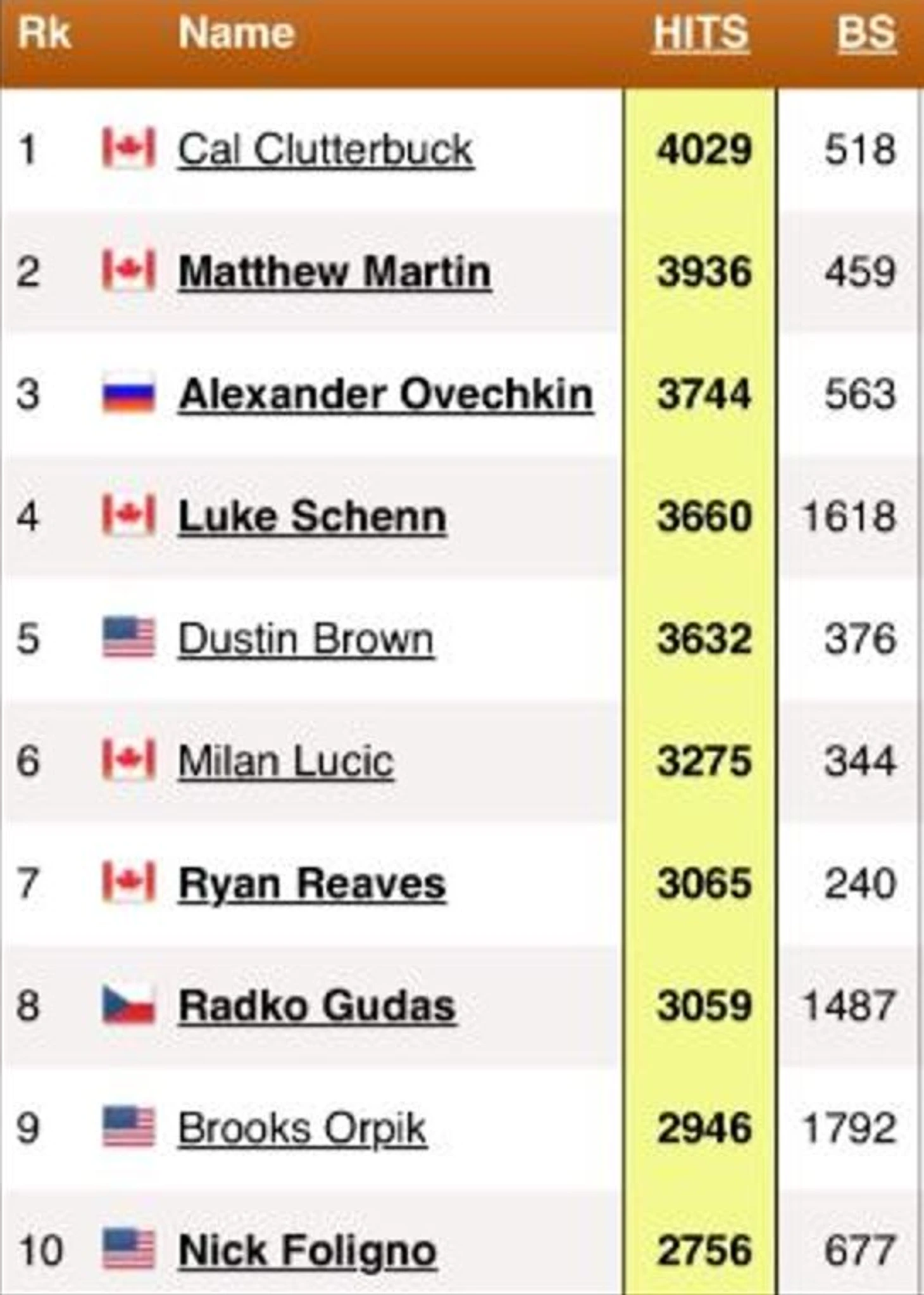 Важная ремарка: НХЛ начала считать хиты лишь с сезона 07/08, делая данную статистику не совсем объективной. Данный аспект игры Алекса часто остается в тени голевых свершений. За 20 сезонов он совершил 3744 силовых приема (187,2 хита за сезон). Здесь лидирует Кэл Клаттербак с 4029 силовыми. Недавно завершивший карьеру Мэттью Мартин – на 2 месте (3936 хитов). В прошлом сезоне Ови совершал 1,69 силовых за игру. Ови уже не так вынослив, как в лучшие годы и проводит на льду меньше игрового времени, поэтому даже до 2 места добраться будет невозможно.