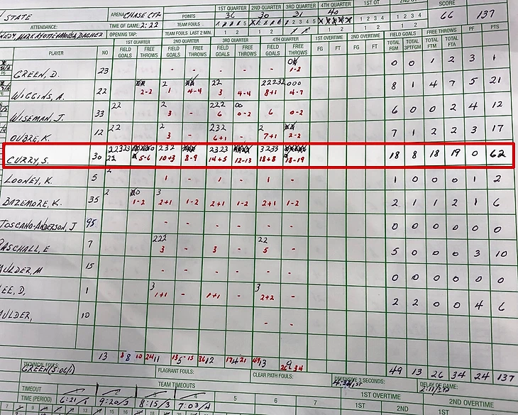В качестве наглядного примера – страница из рекордного матча Карри.