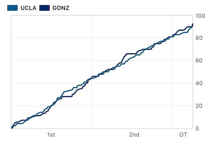 Победителей и проигравших в духе времени разделили три секунды на последнюю атаку и сверхдальний трехочковый под сирену. Университет Гонзага все-таки дожал команду UCLA в овертайме и продлил сезонную серию без поражений уже до 31 игры.