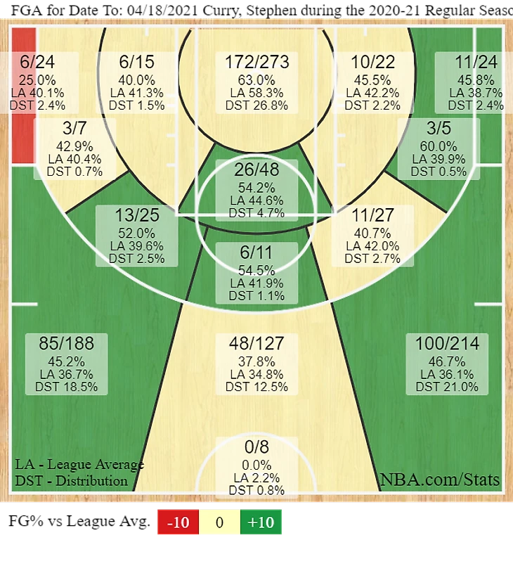За последний месяц Стеф ни разу не опускался ниже 44% попаданий с игры. В последних десяти встречах, которые он провел после восстановления от травмы копчика, разыгрывающий набирает в среднем 39,9 очка и попадает 49,2% трехочковых.