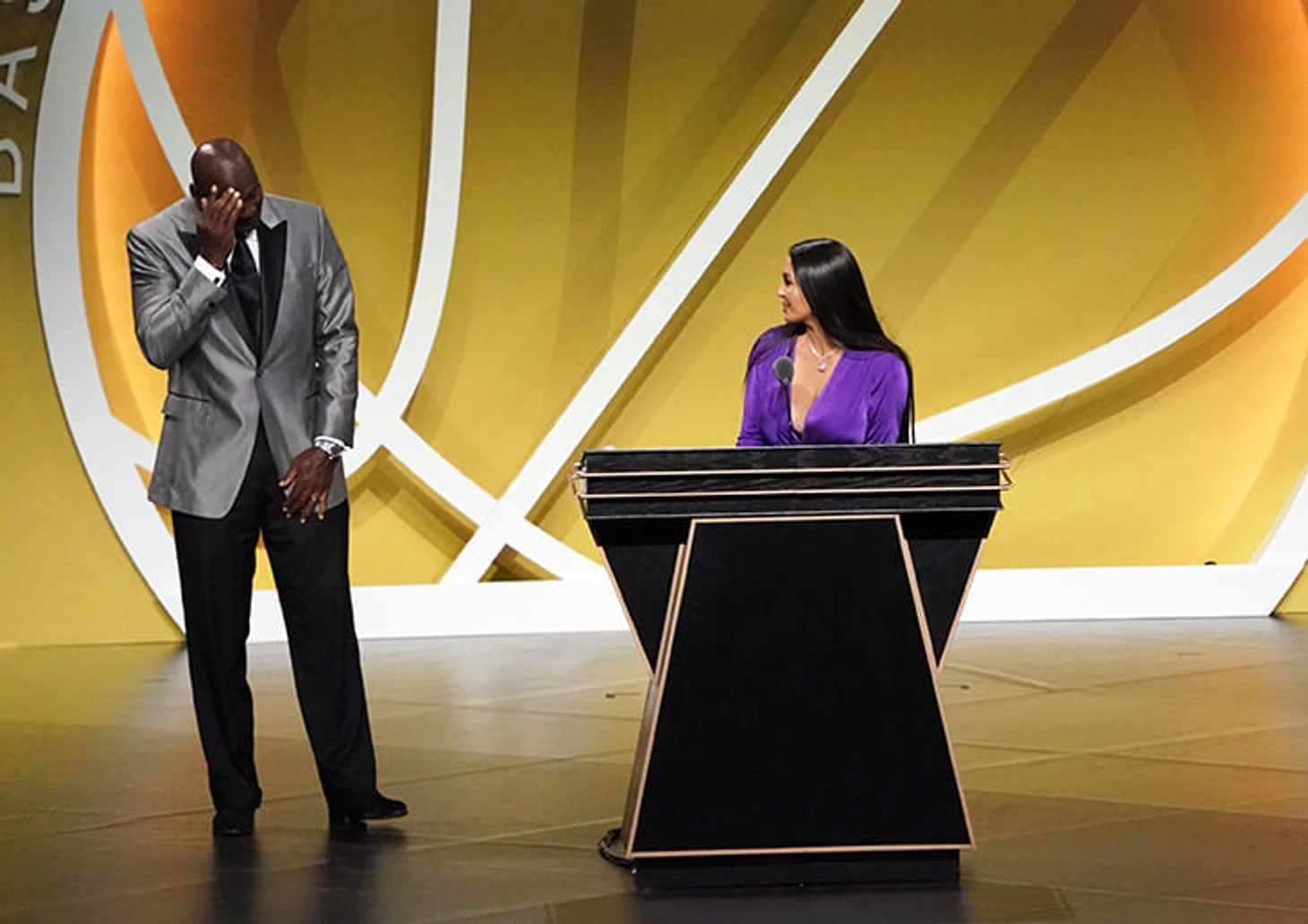 Честь произнести речь на церемонии от имени легендарного защитника «Лейкерс» досталась его вдове, Ванесса. В сопровождении кумира погибшей звезды, великого Майкла Джордана, она поднялась на сцену и выступила с пронзительным и эмоциональным заявлением: