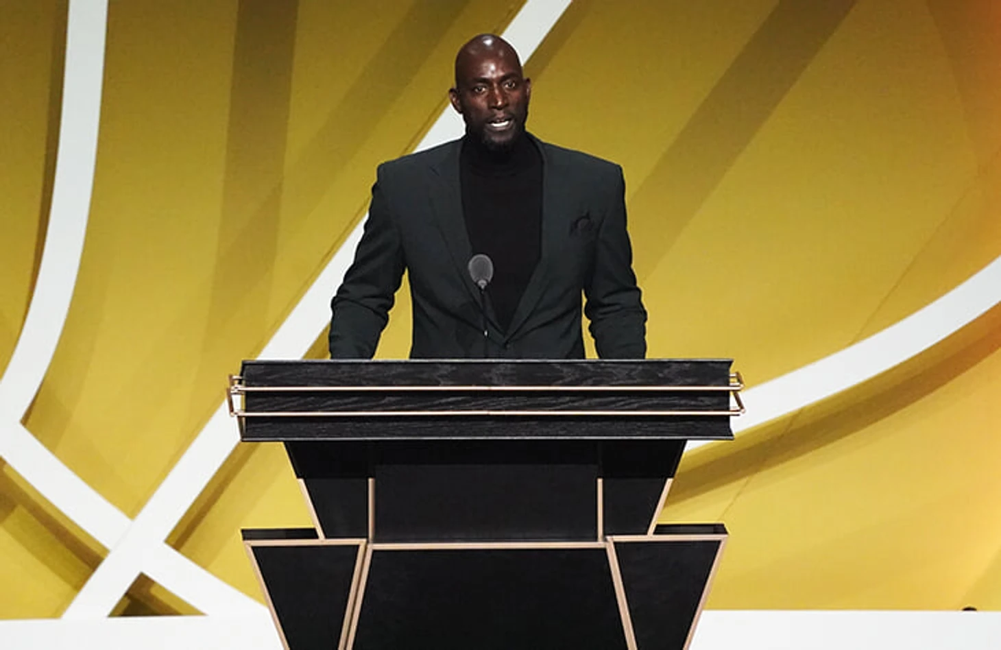 Большую часть непродолжительной речи Кей Джи благодарил всех, кто как-либо помог состояться его карьере (и ввел моду на лысины), включая сидевшего рядом на стуле уроженца Чикаго Айзейю Томаса. Отдельно Кевин отметил своего вечного соперника по позиции Тима Данкана: