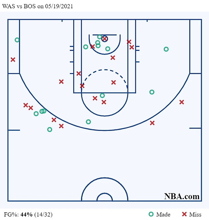 В ситуации, когда дальние броски вообще не принимаются во внимание (14,3% к концу игры у гостей), «Уизардс» могли рассчитывать только на атакующие подвиги одной из своих звезд. Но Бил мало того что проделывал основную работу по защите от 203-сантиметрового Тейтума, так еще и выступал на уколах из-за повреждения левой ноги. Защитнику явно не хватало привычных кондиций для завершения стандартных для себя бросков (в том числе с оттяжкой из-под кольца), в итоге он набрал только 22 очка со слабым процентом.