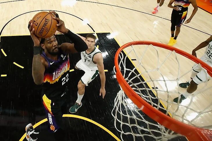 • Этот матч, как и все грядущее противостояние, очень сложен для Деандре Эйтона. Но центровой «Финикса» прекрасно преодолел оказавшиеся перед ним преграды. Он выступал в качестве главного опекуна Янниса, при этом должен был страховать зону под кольцом. И справился! Дарио Шарич заменил его лишь на полторы минуты и покинул площадку с травмой колена, затем на 4 минуты вышел Фрэнк Камински. Для Деандре просто не нашлось адекватной замены, и он в качестве единственного «большого» переиграл весь фронт-корт «Милуоки» с высокими Лопесом, Адетокумбо и Портисом.