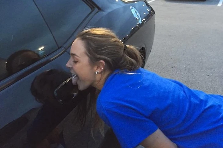 «Я не мыла свой язык с тех пор, как сделала это. Эй, Девин, ты выглядишь так же хорошо, как и твоя машина», – объясняла юная леди.