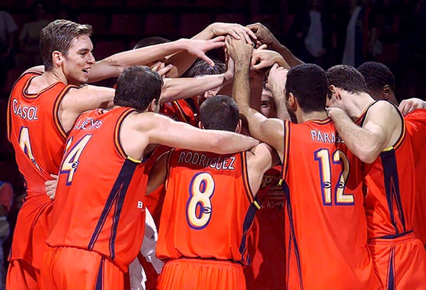 Один из пиков той Испании: основным лидерам по 27-28 лет, Руди Фернандесу всего 23, Карлос Хименес и Хорхе Гарбахоса наблюдают с высоты четвертого десятка.