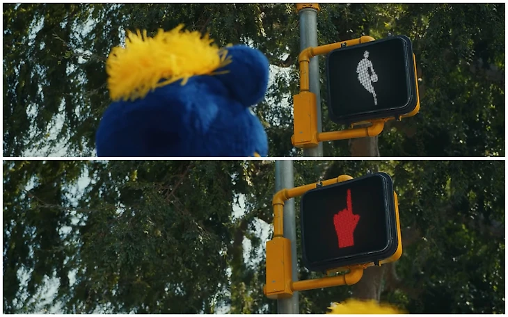 • Разрешающий идти сигнал светофора выполнен в форме логотипа лиги (сделанного по образу и подобию Джерри Уэста). Запрещающий сигнал напоминает нам о любимом жесте Дикембе Мутомбо, которым он одаривал соперников после удачно выполненного блок-шота.