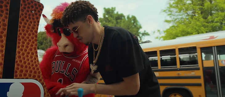• Лучший новичок прошедшего сезона Ламело Болл из «Хорнетс» рубится с маскотом «Буллс» Быком Бенни в старенькую NBA Jam 2х2. Управляют они, конечно, «Шарлотт» и «Чикаго».