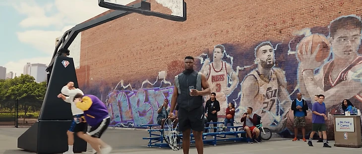 • Зайон Уильямсон повисает на кольце и ломает щит, держа в руке стаканчик Big Face Coffee. Это тот самый бренд кофе, который запустил Джимми Батлер.