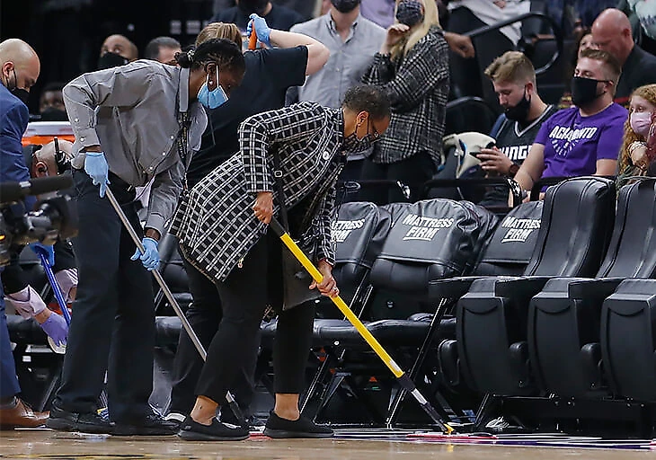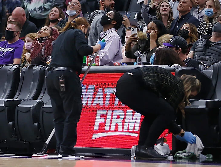 Баскетбол ближе к болельщикам, чем любой другой спорт. Матч НБА прервали из-за того, что пьяный фанат облевал паркет