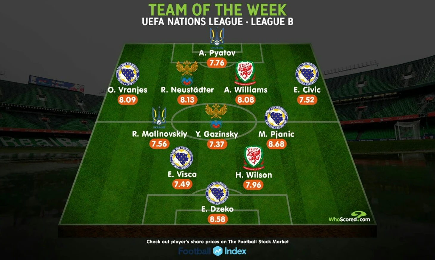 WhoScored опубликовала сборную лучших игроков второго тура Лиги Наций из Дивизиона Б. В неё вошли следующие игроки: