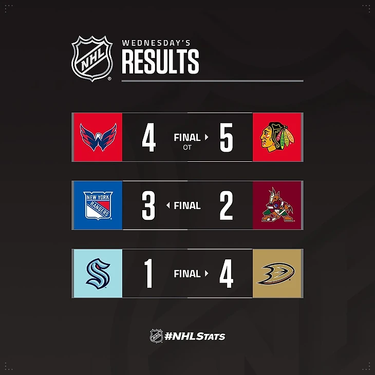 Чикаго понадобилось 34 секунды для трех шайб, Рейнджерс и Анахайм одержали победы в гостях