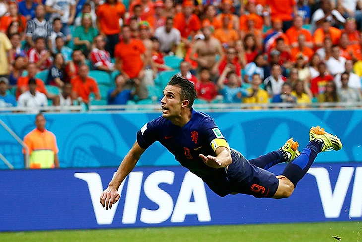У Робина ван Перси было полно красивых голов. Особенно с левой, особенно со штрафных. Но есть среди них сразу несколько голов, где он подстраивал свое тело к атмосферным течениям так, что не восхититься этим можно, только если тебя зовут Златан.