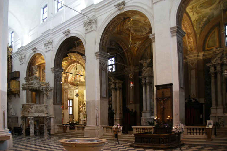 В интерьере собора господствует стиль барокко. Выделяется величественный пресвитерий и шедевры ряда ведущих живописцев мира. В капелле Сантиссимо хранятся полотна Тьеполо. Кроме того, церковь украшают работы Порденоне, Пеллегрино да Сан Даниеле, Торретти (учителя Кановы), Доменико да Толмеццо, Дориньи.