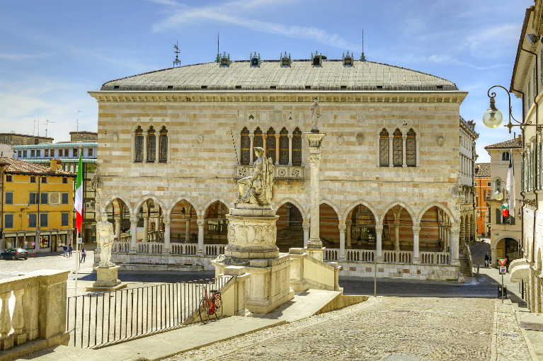 Площадь находится у подножия холма, на котором стоит другой значимый объект города - замок Удине.