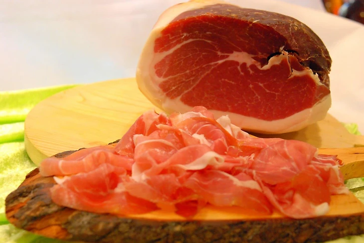 Знаменитая ветчина прошутто (Proschiuto San Daniele) - фриульский деликатес. Сан-Даниэле - это продукт высочайшего качества из винодельческого региона Фриули-Венеция-Джулия. Продукт, который привязан к своим корням и до сих пор производится по многовековой традиции в маленькой деревушке Сан-Даниэле. Ветчину солят, массируют и прессуют в форме в соответствии с предписанной процедурой. После этого она должны сохнуть в течение 3 месяцев, а затем, обмазанная смесью муки, сала, соли и перца, созревать не менее 8 месяцев. Все производство ветчины San Daniele занимает не менее 12 месяцев.