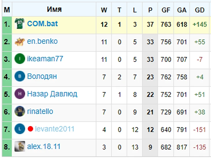 Тура на этих выходных не было, поэтому просто таблица бесящего меня чемпа