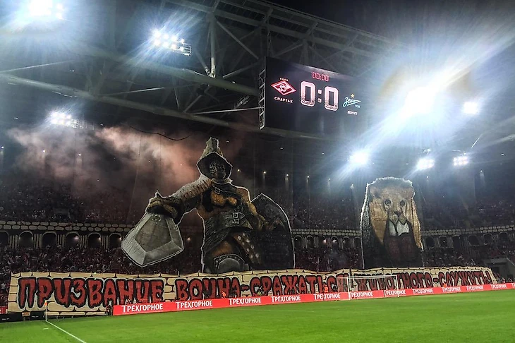 Вот этот перфоманс, кстати, сразу напоминает нам о том, что у московского «Спартака» тоже были интересные перфы с использованием образа гладиатора.