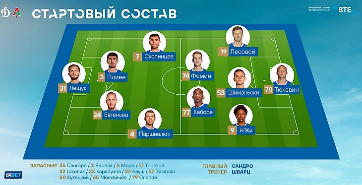 Предыдущий разбор игры против Тамбова я заканчивал словами, что Динамо ждёт более открытый соперник, но ни я, ни кто-либо другой и представить себе не мог на сколько всё легко получится в дерби против московского Локомотива, тем более с учётом того, что в стартовом составе были сделаны вынужденные замены на ключевых позициях – центральные защитник и нападающий, а также вратарь. При этом первые две замены были совершенно неожиданные: вместо дисквалифицированного Ордеца скорее всего вышел бы Нойштедтер, но Роман даже не попал в заявку, и поэтому в центре играл Заурбек Плиев. А на острие нападения вместо Комличенко или Грулёва, которых также не оказалось в заявке на матч, впервые в старте вышел Константин Тюкавин. Со сменой Шунина на Лещука был также назначен новый капитан – Роман Евгеньев. Вот так, дебютировав два года, месяц и два дня назад под руководством Дмитрия Хохлова (просто факт, если что) за Динамо, Роман заслуженно вывел Динамо с капитанской повязкой на руке. Несмотря на то, что состав был неожиданным, я почему-то был спокоен.