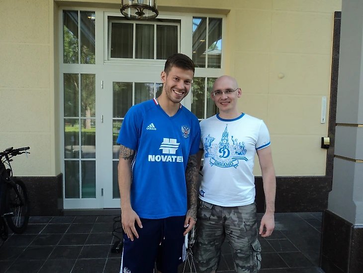 Когда Динамо вылетело в ФНЛ мне удалось посетить сборную России на сборах в Швейцарии. Первым вышедшим из отеля был голкипер сегодняшних гостей, но завидев болельщиков сделал вид что говорит по телефону на португальском и свернул в сторону. А вторым вышел Фёдор Смолов, пожелавший скорейшего возращения в РПЛ нашей команде. Фёдор - скорейшего возвращения на поле!
