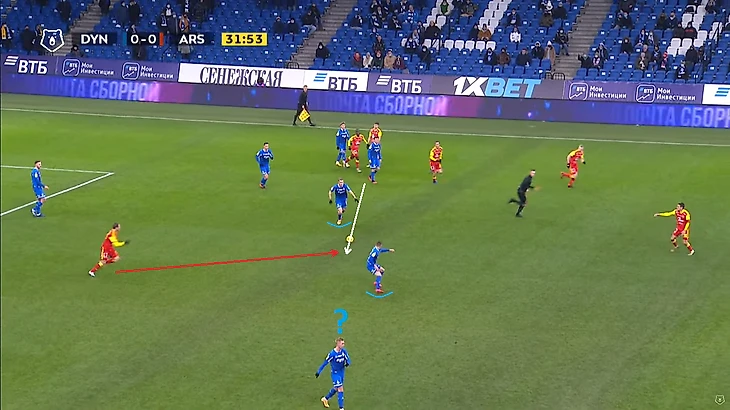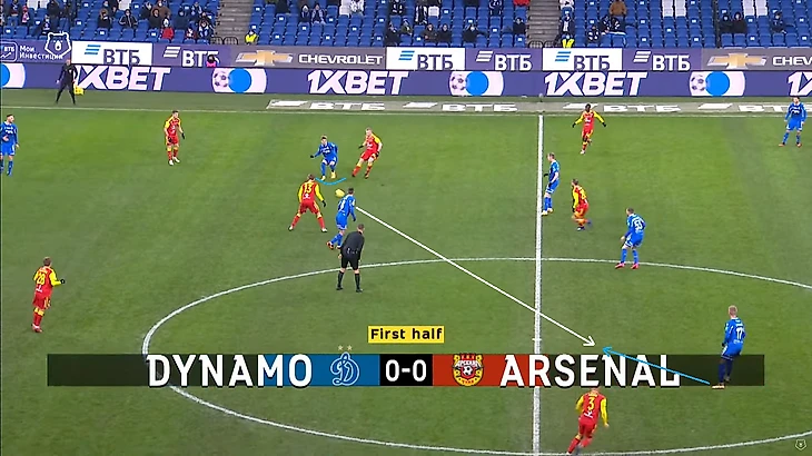 А теперь к игре, которая по содержанию (во всём мачте) была ближе к игре с Ростовом, нежели к первым трём играм (исключая Тамбов). Все мы знаем, как Динамо может играть и технически, и тактически. Но в этой игре на первый план снова вышла психологическая составляющая: я не увидел того настроя, который был против Сочи, Локомотива и Перчатки. Почему так получилось, лично я вижу три возможные причины. Во-первых, после доминирования над перечисленным выше соперниками наши игроки стали слишком самоуверенно относится к себе. Мол, выиграем, как и в прошлых играх. Такой настрой расслабляет, ведь каждый надеется в первую очередь не на себя, а на партнёра, который в таком же состоянии. Как итог – страдает вся команда. Во-вторых, новый тренер ещё не сталкивался с таким «явлением», и если против Ростова ещё можно было его понять, то в этой игре работа над ошибками не была сделана: команда снова вышла на поле расконцентрированной, совершив 20 потерь, половина из них — это передачи сопернику. Ну а в-третьих это наши соперники: Динамо не может играть первым номером против тех команд, которые играют в похожий стиль, что и Динамо. Более того, Арсенал продемонстрировал как легко можно выходить из-под прессинга за счёт быстрого мяча, игры в одно-два касания уже на второй минуте игры: