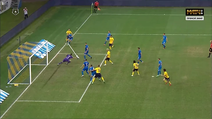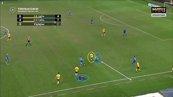В последней игре прошлого сезона я отмечал класс Марио Фернандеса, и на фото ниже я хочу отметить абсолютное неверное решение Фомина в похожем, и даже более лёгком эпизоде: пинание мяча абы куда, вместо его сохранения. Очень хотелось бы верить, чтобы этот момент также будет отмечен и клубными аналитиками, включая видеоаналитику. Двойной негатив заключается в том, что всё это произошло на глазах у главного тренера сборной команды.